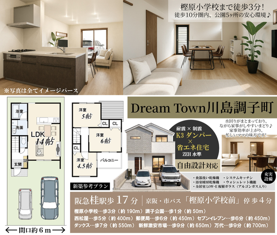 ・阪急「桂」駅までバス乗車5分 京阪・市バス「樫原小学校前」停徒歩4分