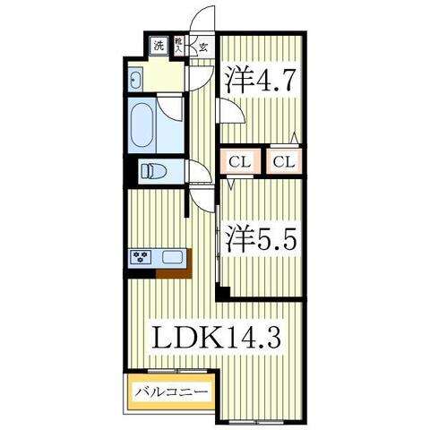 | 築年月 | 2026年01月(新築) | 間取り | 2LDK (内訳:LDK14.3 洋5.5 洋4.7) |