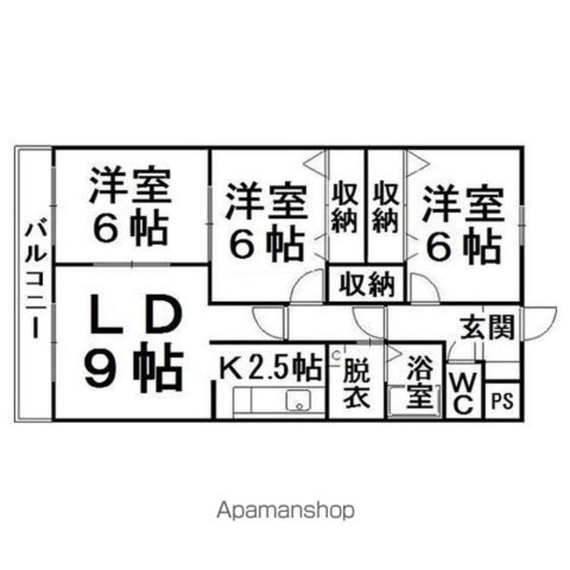 | 築年月 | 1997年03月 | 間取り | 3LDK (内訳:LD9 K2.5 洋6 洋6 洋6) |