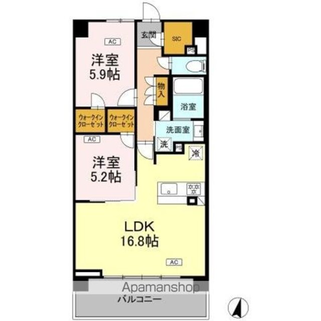 | 築年月 | 2026年01月(新築) | 間取り | 2LDK (内訳:LDK16.8 洋5.2 洋5.9) |