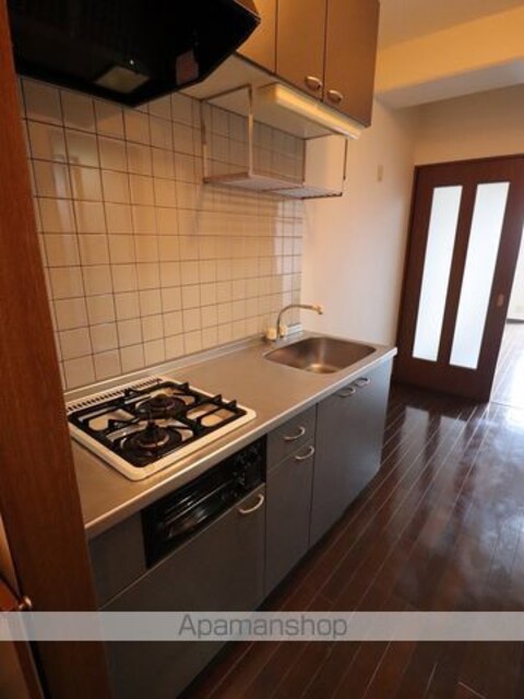 | 設備 | ガス:プロパン、バス・トイレ別、シャワー、コンロ:ガス、コンロの口数:2口、システムキッチン、給湯、洗髪洗面化粧台、冷暖房:完備、トランクルーム、洗濯機置場:室内、BSアンテナ、エレベータ、バルコニー、フローリング、駐輪場あり、バイク置き場あり、温水洗浄便座、独立洗面 |