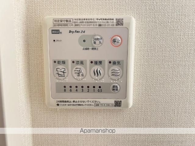 | 設備 | ガス:プロパン、バス・トイレ別、シャワー、コンロ:ガス、コンロの口数:2口、システムキッチン、追い焚き、洗髪洗面化粧台、冷暖房:完備、洗濯機置場:室内、BSアンテナ、バルコニー、駐輪場あり、インターネット:対応、角部屋、TVドアホン、温水洗浄便座、浴室乾燥機 |