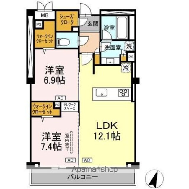 | 築年月 | 2025年12月(新築) | 間取り | 2LDK (内訳:LDK12.1 洋7.4 洋6.9) |
