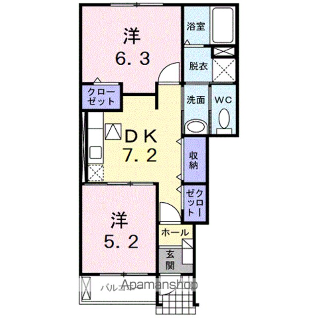 | 築年月 | 2009年03月 | 間取り | 2DK (内訳:DK7.2 洋6.3 洋5.2) |