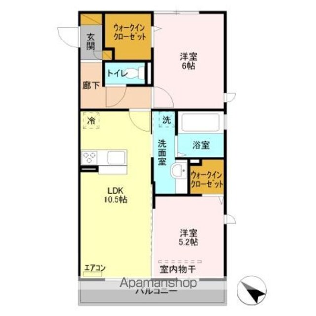 | 築年月 | 2014年02月 | 間取り | 2LDK (内訳:LDK10.5 洋6 洋5.2) |