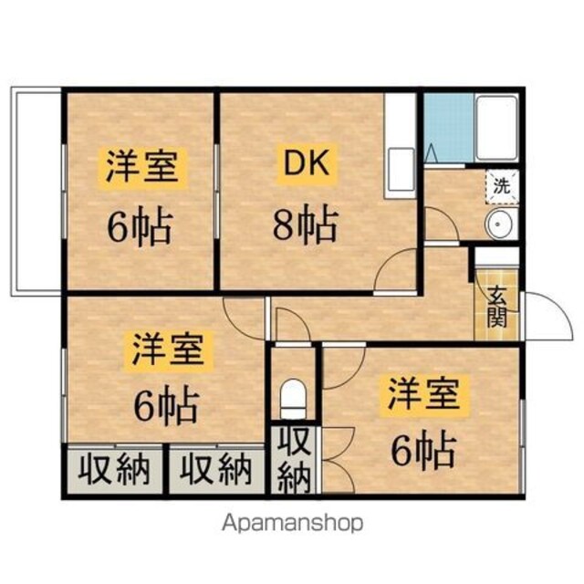 | 築年月 | 1995年03月 | 間取り | 3DK (内訳:DK8 洋6 洋6 洋6) |