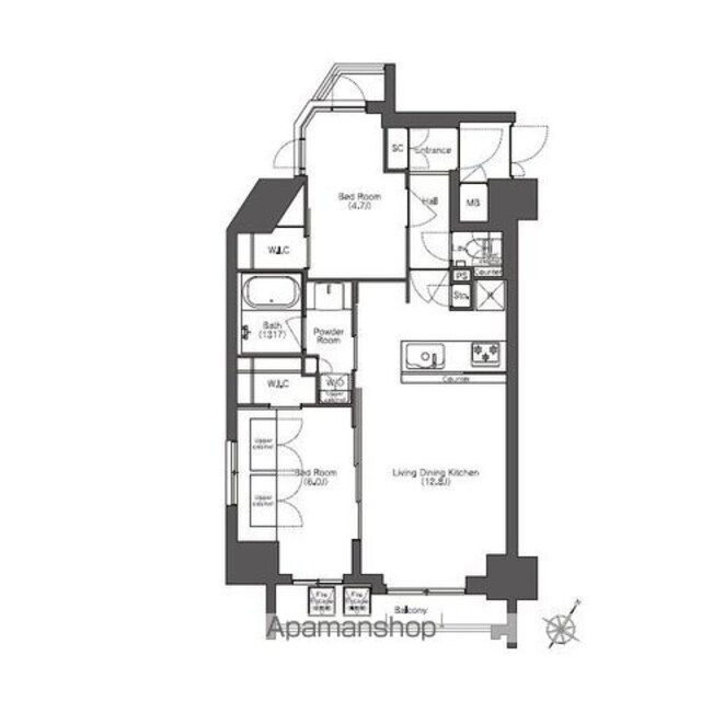| 築年月 | 2018年09月 | 間取り | 2LDK (内訳:LDK12.8 洋6 洋4.7) |
