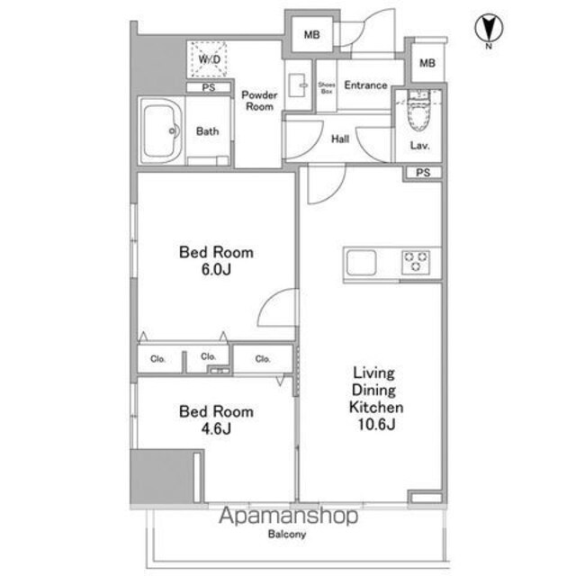 | 築年月 | 2016年01月 | 間取り | 2LDK (内訳:LDK10.6 K3.6 洋4.6 洋4.6) |