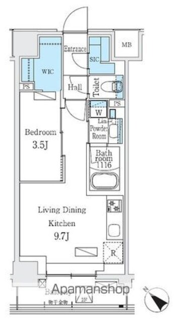 | 専有面積 | 35.12㎡ (10.62坪) | バルコニー面積 | 5.00㎡ (1.51坪) |