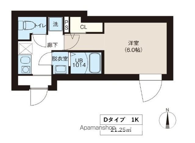 | 専有面積 | 21.25㎡ (6.42坪) | バルコニー面積 | - |