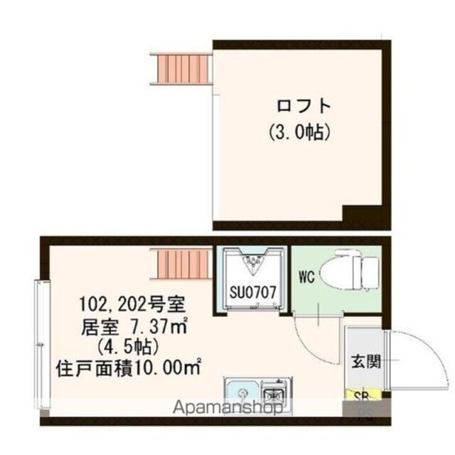 | 専有面積 | 10.00㎡ (3.02坪) | バルコニー面積 | - |