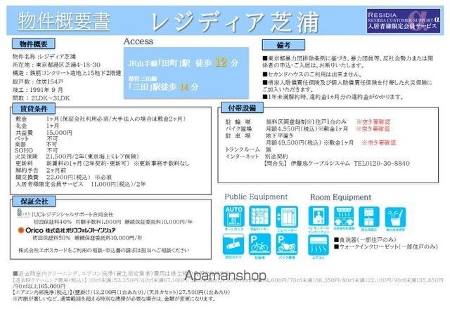 | 備考 | バイク置場(空有):月額4,950円 無料駐輪場(空有) ※1年未満解約時、賃料1ヶ月分の違約金有り※保証会社利用必須※大手法人契約の場合は敷金2ヶ月※セカンドハウス利用不可※本物件北西側近隣地(東京都港区芝浦4157)において「日本電気計器検定所」 保証会社利用必須 初回契約時:40%、更新時:10,000円、月額:1,000円 その他初期費用 22000円 | ||