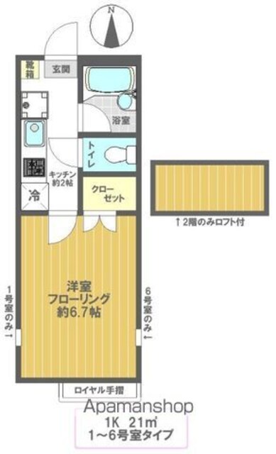 | 専有面積 | 21.00㎡ (6.35坪) | バルコニー面積 | - |