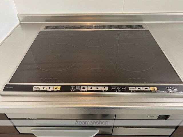 | 設備 | バス・トイレ別、シャワー、コンロ:IH、システムキッチン、追い焚き、洗髪洗面化粧台、冷暖房:完備、洗濯機置場:室内、CATV、バルコニー、フローリング、駐輪場あり、角部屋、TVドアホン、温水洗浄便座、オール電化、浴室乾燥機、照明器具 |