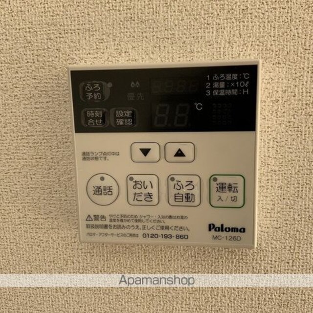 | 設備 | ガス:プロパン、バス・トイレ別、シャワー、コンロ:ガス、コンロの口数:2口、システムキッチン、給湯、追い焚き、洗髪洗面化粧台、冷暖房:完備、床下収納、ウォークインクローゼット、洗濯機置場:室内、CATV、バルコニー、フローリング、駐輪場あり、インターネット:対応、角部屋、TVドアホン、温水洗浄便座、複層ガラス、24H管理、浴室乾燥機、独立洗面 |