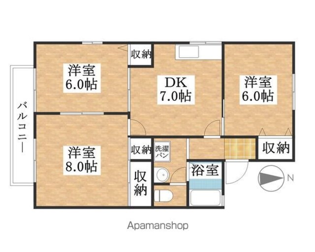 | 築年月 | 1992年10月 | 間取り | 3DK (内訳:DK7 洋8 洋6 洋6) |