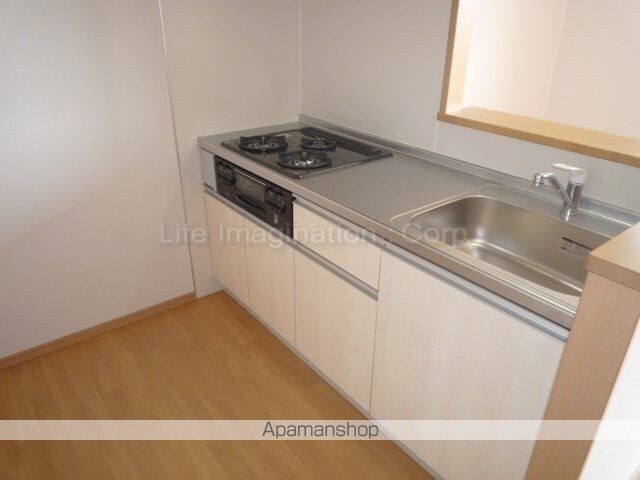 | 設備 | ガス:プロパン、バス・トイレ別、シャワー、コンロ:ガス、コンロの口数:2口、システムキッチン、給湯、追い焚き、洗髪洗面化粧台、冷暖房:完備、洗濯機置場:室内、BSアンテナ、バルコニー、駐輪場あり、インターネット:光、TVドアホン、温水洗浄便座、独立洗面 |