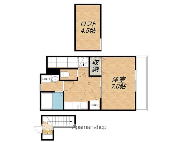 | 設備 | ガス:プロパン、バス・トイレ別、シャワー、コンロ:ガス、給湯、洗髪洗面化粧台、冷暖房:完備、ロフト付き、洗濯機置場:室内、BSアンテナ、バルコニー、駐輪場あり、インターネット:光、TVドアホン、24H管理、浴室乾燥機、独立洗面、照明器具 |