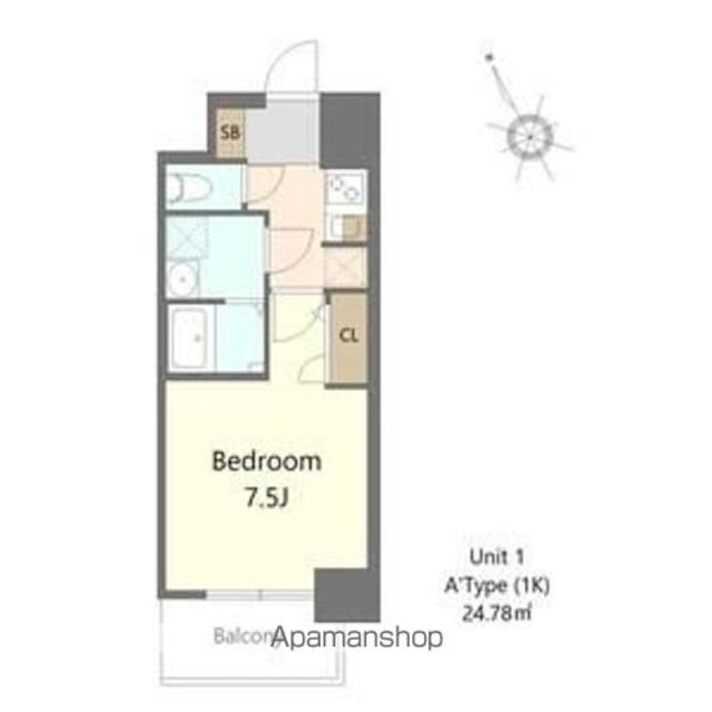 | 専有面積 | 24.78㎡ (7.49坪) | バルコニー面積 | - |