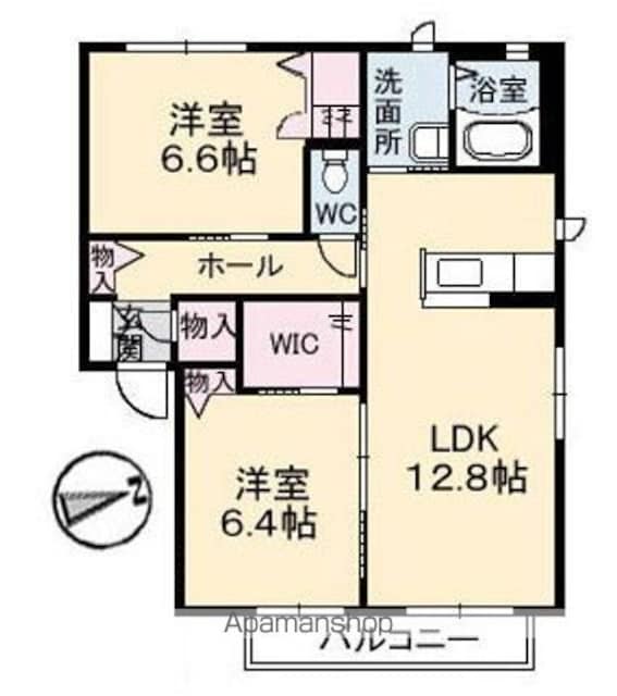 | 築年月 | 2009年07月 | 間取り | 2LDK (内訳:LDK12.8 洋6.6 洋6.4) |