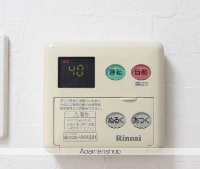 | 設備 | シャワー、コンロ:ガス、冷暖房:完備、バルコニー、フローリング、駐輪場あり、インターネット:光、TVドアホン、温水洗浄便座、24H管理、照明器具 |