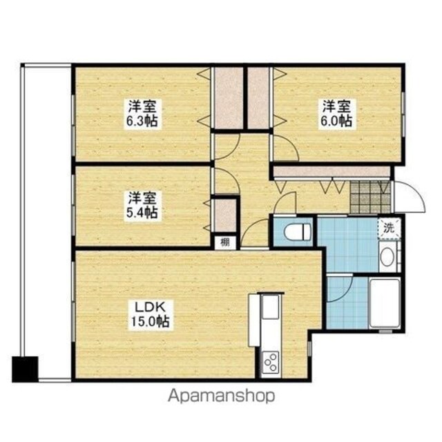 | 築年月 | 2004年12月 | 間取り | 3LDK (内訳:LDK15 洋6 洋6.3 洋5.4) |