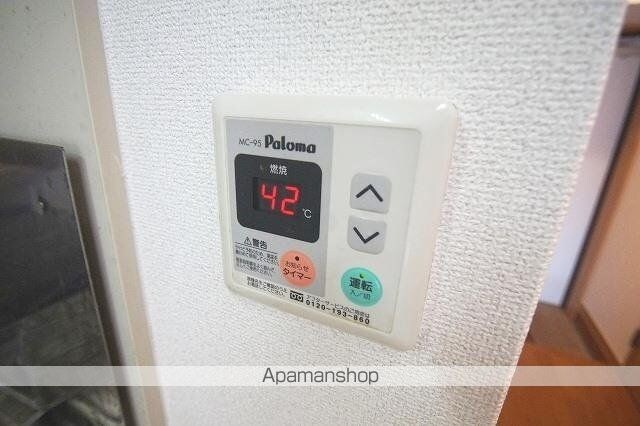 | 設備 | ガス:プロパン、バス・トイレ別、シャワー、コンロ:ガス、コンロの口数:2口、システムキッチン、給湯、洗髪洗面化粧台、冷暖房:完備、洗濯機置場:室内、オートロック、エレベータ、バルコニー、フローリング、宅配ボックス、駐輪場あり、バイク置き場あり、タイル貼り、インターネット:光、TVドアホン、温水洗浄便座、浴室乾燥機、独立洗面 |
