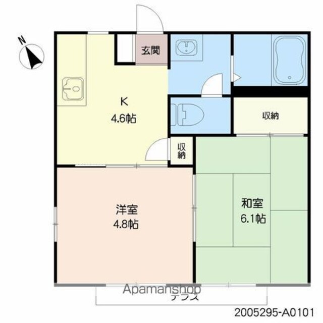 | 築年月 | 1997年11月 | 間取り | 2K (内訳:K4.6 洋4.8 和6.1) |