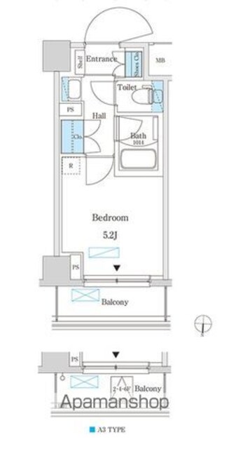 | 専有面積 | 16.65㎡ (5.03坪) | バルコニー面積 | 3.00㎡ (0.90坪) |