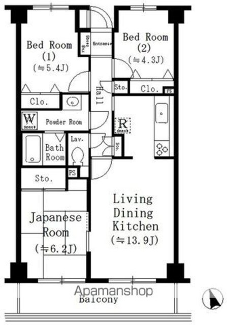 | 専有面積 | 66.22㎡ (20.03坪) | バルコニー面積 | - |