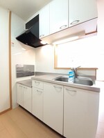 | 設備 | 水道:公営、ガス:プロパン、排水:下水、バス・トイレ別、シャワー、給湯、追い焚き、洗髪洗面化粧台、冷暖房:エアコン、洗濯機置場:室内、CSアンテナ、BSアンテナ、バルコニー、フローリング、駐輪場あり、TVドアホン、温水洗浄便座、浴室乾燥機、独立洗面、インターネット使用料不要、防犯カメラ、カウンターキッチン |