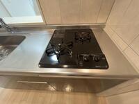 広々1LDK、人気のカウンターキッチンには2口ガスコンロがついています。