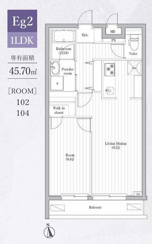 | 専有面積 | 45.70㎡ (13.82坪) | バルコニー面積 | - |