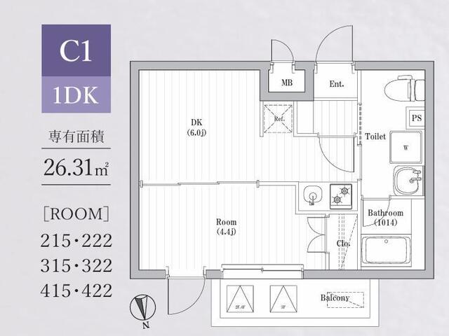 | 専有面積 | 26.31㎡ (7.95坪) | バルコニー面積 | - |