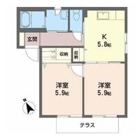 | 築年月 | 2002年01月 | 間取り | 2K (内訳:K5.8 洋5.9 洋5.9) |