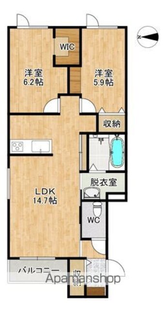 | 築年月 | 2023年03月 | 間取り | 2LDK (内訳:LDK14.7 洋6.2 洋5.9) |