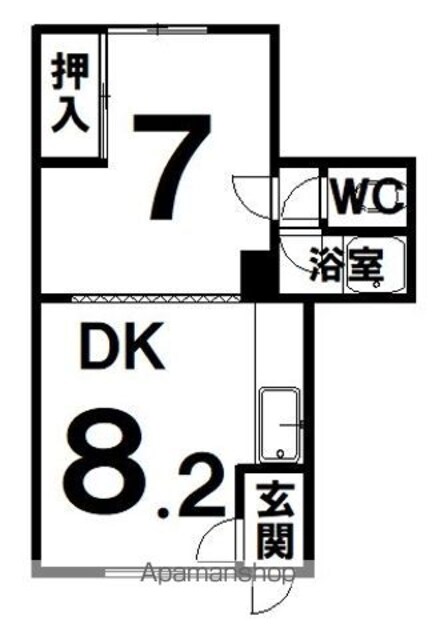 | 築年月 | 1970年12月 | 間取り | 1DK (内訳:DK8.2 洋7) |