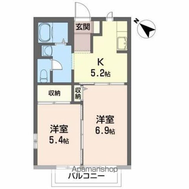 | 築年月 | 2000年04月 | 間取り | 2K (内訳:K5.2 洋6.9 洋5.4) |