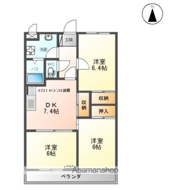 | 築年月 | 2000年01月 | 間取り | 3DK (内訳:DK7.4 和6 洋6.4 洋6) |