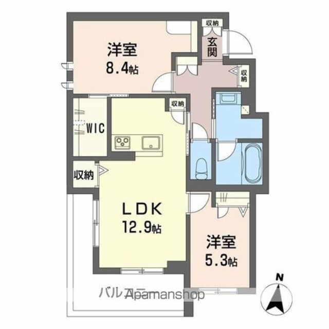 | 築年月 | 2026年03月 | 間取り | 2LDK (内訳:洋8.4 洋5.3 LDK15.9) |