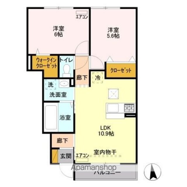 | 築年月 | 2012年10月 | 間取り | 2LDK (内訳:LDK10.9 洋6 洋5.6) |