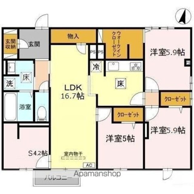 | 築年月 | 2015年04月 | 間取り | 3LDK (内訳:LDK16.7 洋5.9 洋5.9 洋5 S4.2) |