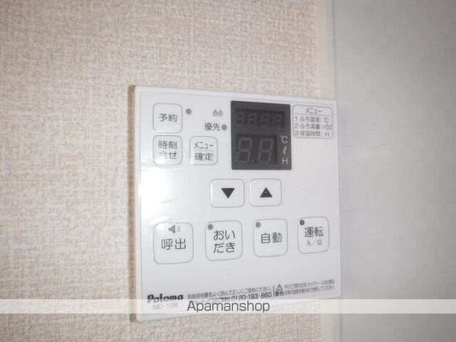 | 設備 | ガス:プロパン、バス・トイレ別、シャワー、追い焚き、洗髪洗面化粧台、冷暖房:完備、ウォークインクローゼット、洗濯機置場:室内、BSアンテナ、オートロック、バルコニー、フローリング、駐輪場あり、TVドアホン、温水洗浄便座、浴室乾燥機 |