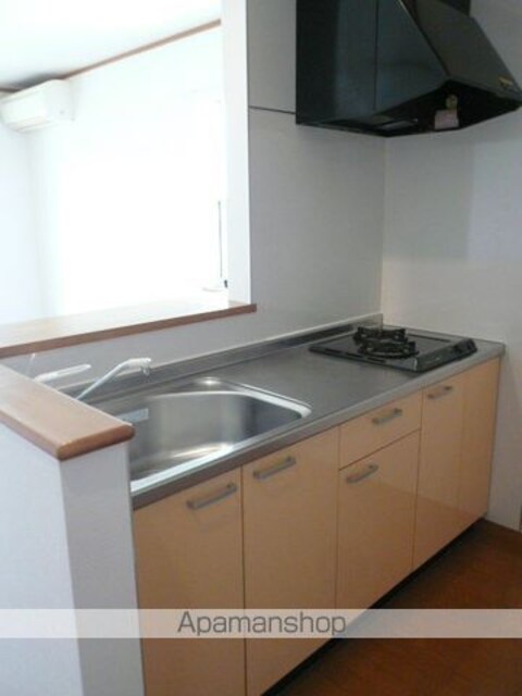 | 設備 | ガス:プロパン、バス・トイレ別、シャワー、コンロ:ガス、コンロの口数:2口、システムキッチン、追い焚き、冷暖房:完備、洗濯機置場:室内、CATV、BSアンテナ、バルコニー、フローリング、駐輪場あり、TVドアホン、浴室乾燥機、独立洗面 |