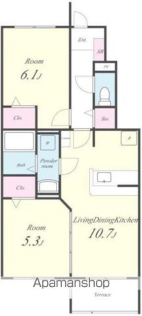 | 築年月 | 2006年03月 | 間取り | 2LDK (内訳:LDK10.7 洋6.1 洋5.3) |