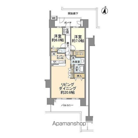 築年月 | 2007年02月 | 間取り | 2LDK (内訳:LD20.6 K3.4 洋7 洋6) |