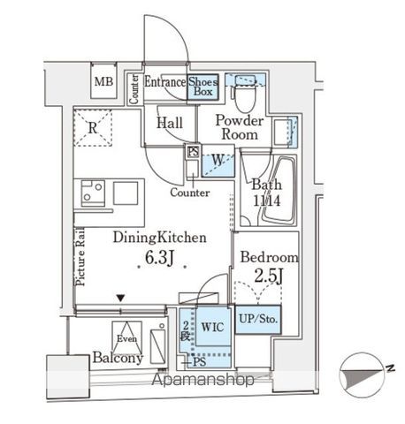 | 専有面積 | 25.12㎡ (7.59坪) | バルコニー面積 | 3.00㎡ (0.90坪) |