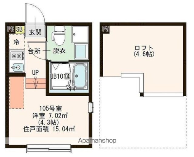 | 専有面積 | 15.04㎡ (4.54坪) | バルコニー面積 | - |