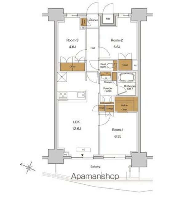 | 専有面積 | 65.02㎡ (19.66坪) | バルコニー面積 | - |