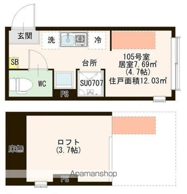 | 専有面積 | 12.03㎡ (3.63坪) | バルコニー面積 | - |